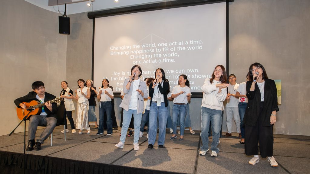幸福一餐的义工团队在结束前演唱组织主题曲,现场充满温馨和感动