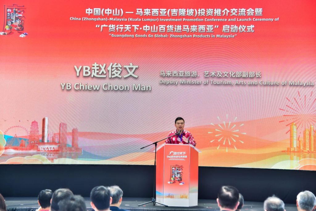 马来西亚旅游、艺术及文化部副部长YB赵俊文、中国驻马来西亚特命全权大使欧阳玉靖、中山市委书记郭文海,以及马中商务理事会、马来西亚中华总商会、马来西亚中华大会堂总会、马中友好协会、马来西亚广东会馆联合会等商协会代表,中山市经贸团、深圳市服贸协会经贸团及海内外媒体共同出席,见证这场集商贸交流、文化融合与产业合作于一体的盛会。